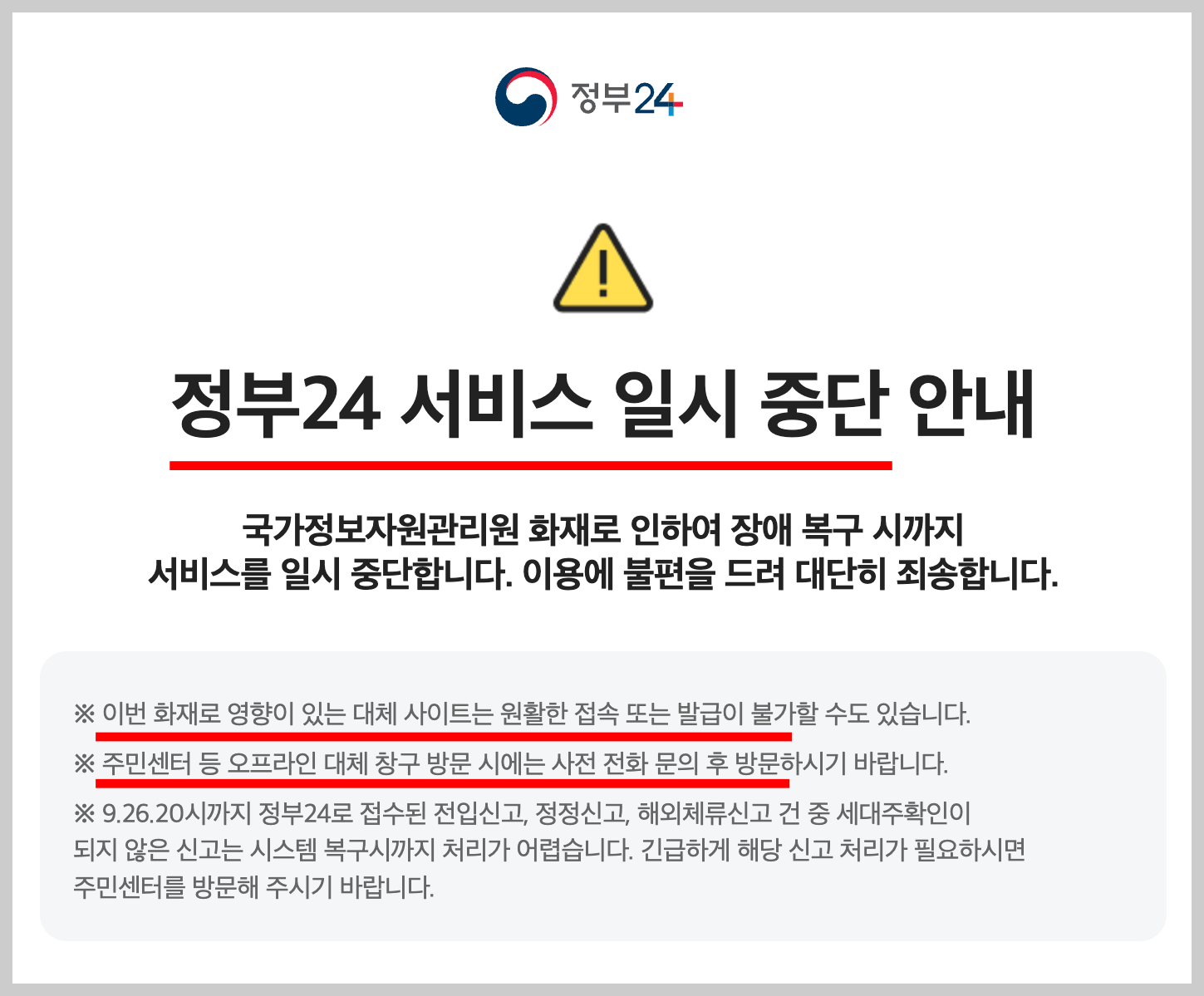 대체 사이트·오프라인 창구·민간 서비스를 활용해 생활의 공백을 최소화하시길 바랍니다.