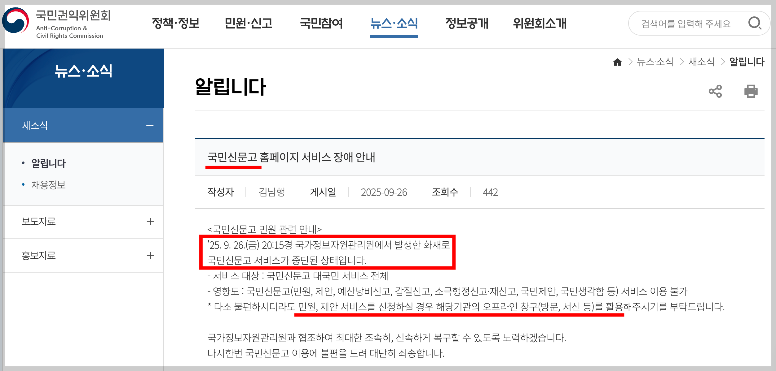 - 수기 접수 체계 가동 → 국민 불이익 최소화